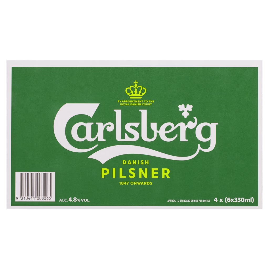 Item Number:11129Core Range:NoBarcode Unit:N111291Barcode Carton:9310441003265Qty per UOM:24Size:330mlBrand:CarlsbergCategory:BeerGroup:International BeerCountry:EuropeRegion:DenmarkVarietal:Beer-Premium Login to Order Back to All Products