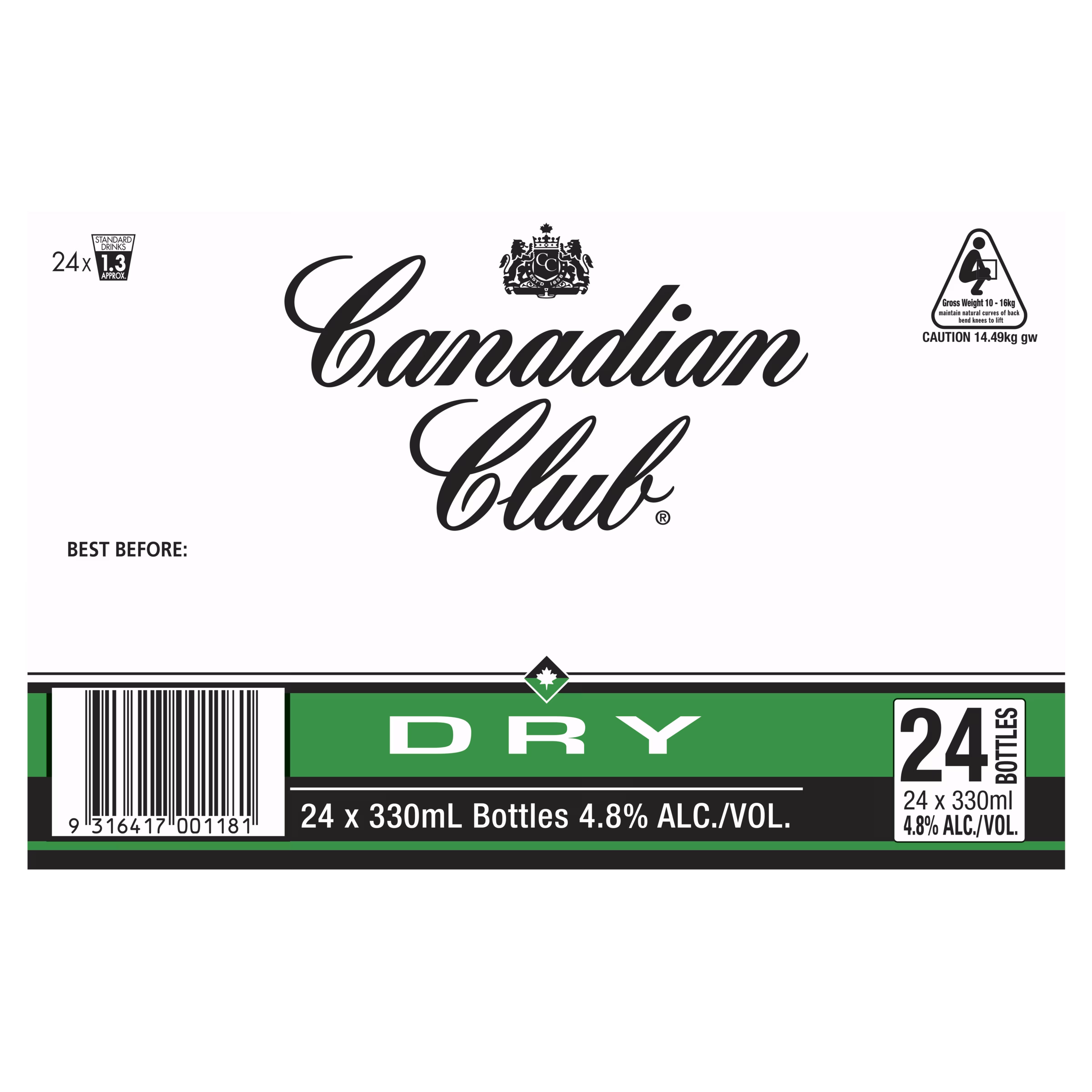 Canadian Club 4.8% & Dry Btl Loose: 330 ml